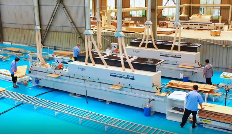 Edge banding work is an important process in the manufacture of panel furnture. The qualit of the edge banding directly affects the qualit, price and grade of the product. By edge banding, EXCITECH edgeband machine can improve the appearance qualit of the furniture machineure, avoid the corners damage and the veneer layer pick up or peel off, and at the same time, EXCITECH edgeband machine can play the role of waterproofing, close the release of harmful gases and reduce deformation during the transportation and using process. The raw materials used by the panel furniture manufacturers are mainly for particleboard, MDF and other wood-based panels, the selected edge strips are mainly PVC, polyester, melamine and wood strips. The structure of the edge banding machine mainly includes the fuselage, various processing components and control systems. EXCITECH edgeband machine is mainly used for edge sealing of panel furniture. EXCITECH edgeband machine is characterized by automation, high efficiency, high precision and aesthetics. EXCITECH edgeband machine has been widely used in panel furniture manufacturers.