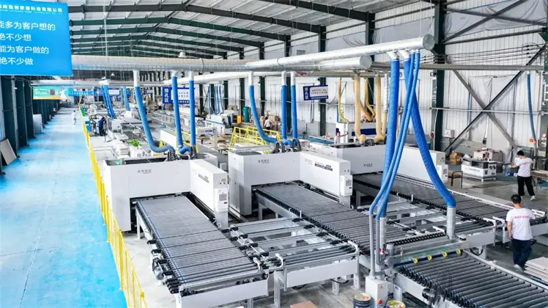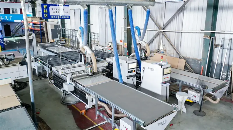 EXCITECH adheres to the guiding ideology of attaching equal importance to R&D and quality, increases investment in R&D, attaches importance to product quality and user experience, studies, explores, studies and practices in the field of intelligent manufacturing, independently develops the MS production management system and central control software that meet the market demand based on more than ten years of experience in R&D and production of numerical control equipment, vigorously promotes the application of technical information means, and combines automation hardware to create a customized furniture flexible smart factory project as an advanced technology display of EXCITECH, which is interconnected and intelligent, and promotes the furniture industry to realize information data.Nowadays, furniture production has got rid of the isolated stand-alone mode in the past, and has become an IOT mode from planning to design, production, process monitoring, full circulation of information and full coverage. The application of intelligent robots has been increased from material transmission to automatic sorting, and the data information of each link is collected, analyzed and integrated by the master control system, thus realizing the scale, industrialization and informatization of customized production.